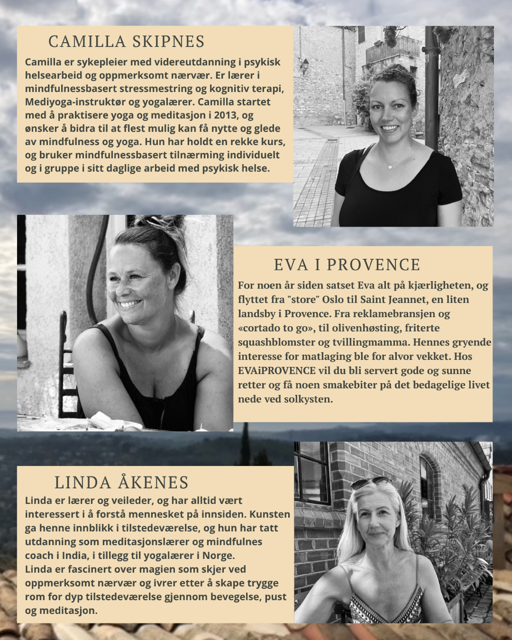 Vi gleder oss til å ta imot deg på denne unike reisen i Provence. En uke hvor du kan puste med magen og bare være.